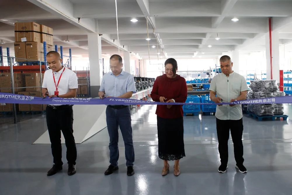 剪彩儀式上,集團(tuán)董事長姚湘江、集團(tuán)總裁徐春華、集團(tuán)黨支部書記胡仲、醫(yī)療器械事業(yè)部常務(wù)副總施李剛共同為新車間開工啟動剪彩。隨后董事長和總裁一起按下流水線啟動鍵,千喜車業(yè)第20萬輛電動輪椅車正式下線!