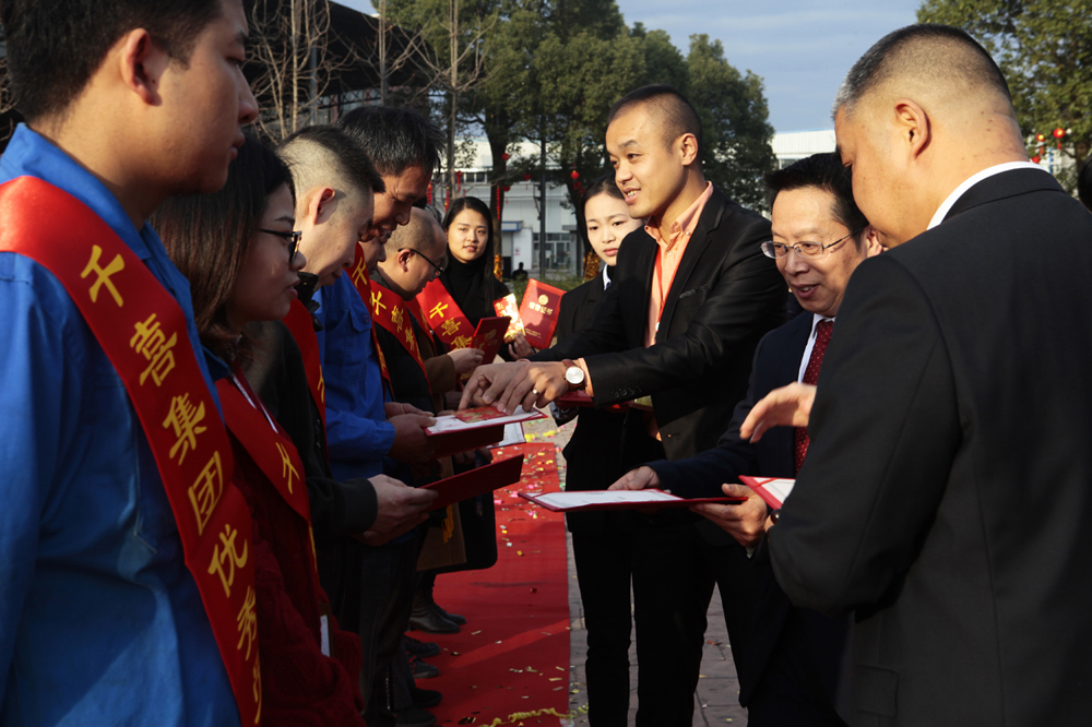 隨后,進行了2019年度優(yōu)秀員工和黨員的表彰儀式,各事業(yè)部共有41位人員和1位黨員獲得了優(yōu)秀員工和優(yōu)秀黨員的榮譽稱號。各事業(yè)部優(yōu)秀員工依次上臺,由總經(jīng)理代表集團為他們授予榮譽證書及獎勵。當(dāng)一份份沉甸甸的證書交到他們手上時,便是對他們努力工作的最大肯定和褒獎,也希望未來他們能帶著千喜人的精神繼續(xù)前行,不斷挑戰(zhàn),不斷超越。同時,集團辦公室韋偉作為優(yōu)秀員工代表上臺發(fā)言:感謝公司提供的平臺,讓她能夠在工作中實現(xiàn)自我價值,同時,也感謝千喜這個大家庭,讓她在緊張的工作之余體會到了家的溫暖和親友般真摯的情誼。未來,依然會在自己的崗位上發(fā)光發(fā)熱,為千喜集團的發(fā)展貢獻自己的力量。
