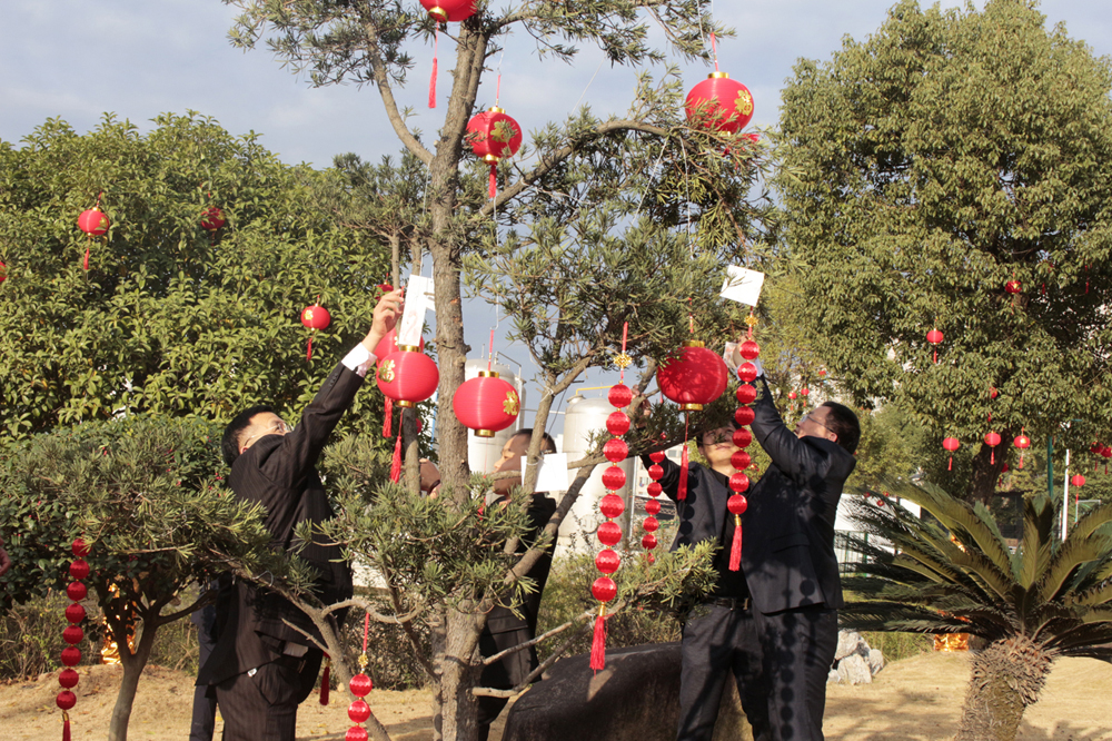 之后,主持人再次邀請各事業(yè)部的總經(jīng)理登臺,由他們分別寫下2020年的第一份心愿,許下對未來的美好愿景,并親自將自己寫的心愿卡掛到廠區(qū)的“心愿樹”上。在他們的引領(lǐng)下,全體在場人員紛紛移動到廣場上的“心愿區(qū)”,在擺放了各式各樣心愿卡的桌臺旁,大家仔細的挑選著中意的卡片,一筆一劃寫下自己的心愿,然后鄭重其事的走到心愿樹前,將自己的心愿卡掛在高高的枝丫上,很快,一張張小小的心愿卡,便凝結(jié)成了一棵盛開著許許多多心愿的大樹,乘著微風(fēng)飄揚著。 隨著心愿樹上的心愿卡越來越“茂盛”,掛好心愿卡的人員便來到了“禮品區(qū)”。在這里,各個事業(yè)部負責(zé)發(fā)放春節(jié)禮品的工作人員,已經(jīng)早早的守候在此了,看著他們一張張熟悉的臉龐,熟練地將禮品一一發(fā)到大家的手中,共同分享新年的喜悅與期盼。