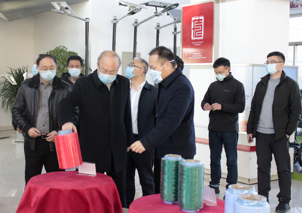 在集團董事長姚湘江等公司高層的陪同下,尹學(xué)群市長、張群環(huán)市長一行先后參觀了集團展廳和千禧龍纖的生產(chǎn)車間。參觀集團展廳時,尹學(xué)群市長、張群環(huán)市長一行詳細了解了集團旗下各子公司的產(chǎn)品線,并針對各個系列產(chǎn)品的應(yīng)用領(lǐng)域、延伸產(chǎn)品等方面,與隨行領(lǐng)導(dǎo)展開討論與交流。參觀生產(chǎn)車間時,則詳細的詢問了復(fù)工后的生產(chǎn)情況及現(xiàn)場防疫管控工作的執(zhí)行情況。在與尹學(xué)群市長、張群環(huán)市長一行交流的過程中,姚湘江董事長對復(fù)工復(fù)產(chǎn)后的生產(chǎn)情況逐一進行了匯報,并詳細說明了集團推行的各項防疫措施。